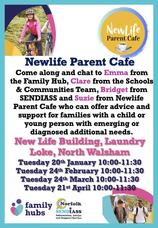 Parent Cafe is a free coffee morning run by Suzie and a wonderful team of volunteers. This group is a wonderful time for parents/carers/grandparents of those with additional needs to come together for coffee, friendship and support.
